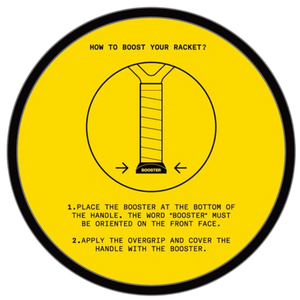 THE BOOSTER IS A SMALL CAP TO BE APPLIED ON THE BASE OF THE RACKET HANDLE, THAT HELPS TO PREVENT HAND SLIPPING AND CONCENTRATES THE POWER ON THE GRIP.